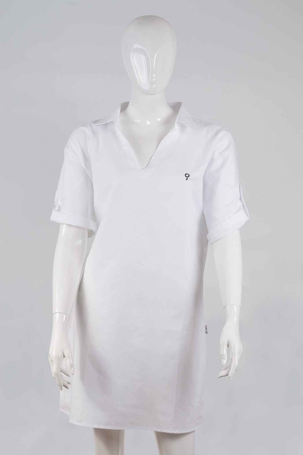 vestido de tela Oxford 100% algodón, cuello solapa, escote v